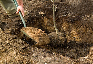 Высадка деревьев должна происходить на расчищенном от различного мусора или строительных материалов участке. Когда будете подготавливать посадочные ямы, то следует отдельно укладывать верхние и нижние слои земли. При высадке деревьев яму нужно сначала засыпать плодородным слоем почвы. А если тот грунт, который вы выкопали, непригоден, то его следует заменить новым плодородным слоем, который необходимо заранее подвезти на участок для высадки деревьев. Ямы копайте округлых форм, потому как лишь в этом случае стенки будут отвесные. Не стоит делать очень глубокую яму, она должна быть немного выше корня дерева. Желательно перекопать почву возле посадочной ямы, это необходимо для того, чтобы корням было проще расти в грунт. Диаметр ямы напрямую зависит от объема корня и возраста дерева. Наиболее лучшим вариантом считается диаметр ямы в полтора раза превышающий диаметр корня.