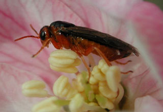 Яблонный пилильщик. Личинка яблонного пилильщика повреждает плоды. Зиму личинки пережидают в почве, в плотных земляных коконах. Глубина зимовки до 15 см. Весной личинки окукливаются, пилильщики вылетают перед цветением и откладывают по одному яичку в чашечку цветка. Из яйца, отложенного в цветок, рождается личинка. В отличие от плодожорки она полностью выедает семенную камеру плода. Одна личинка повреждает 2-3 плода. Обычно, первая червивая падалица состоит из плодов, поврежденных пилильщиком. Отмечается более сильное повреждение пилильщиком ранних сортов яблонь.
