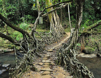 Корни этого растения большей своей частью находятся не в земле, а поверх неё, т.е. растут наружу. Вот жители Черапунджи и придумали использовать их в качестве «строительного материала» для мостов.