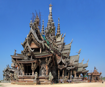 Храм Истины имеет четыре крыла, которые посвящаются четырем главным направлениям искусства, философии и религии (индуистскому, кхмерскому, тайскому и китайскому).